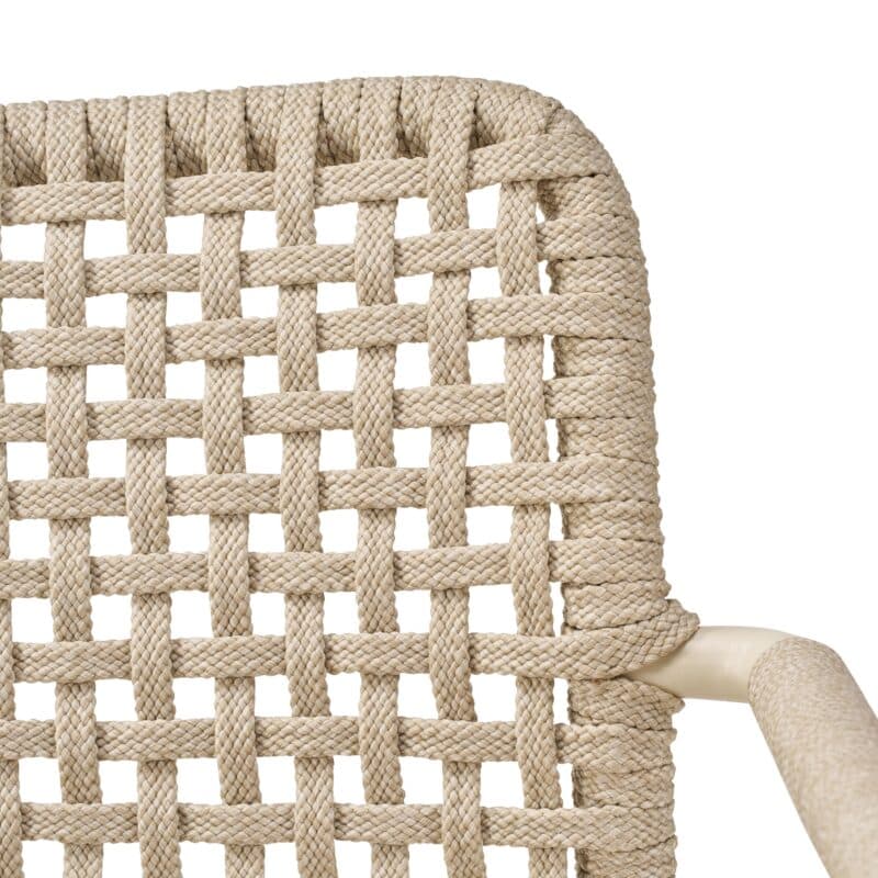 Die Sitz- und Rückenfläche der Gartenstühle ist mit Rope bespannt, 6 mm starken Kordeln aus Polypropylen, die witterungsbeständig und UV-resistent sind. An der Rückenlehne ist das Rope im Knoten- oder Quadro-Muster gestaltet, die Sitzfläche ist einheitlich im Quadro-Muster geflochten. Passend zur gewählten Gestellfarbe sind die Stühle entweder mit Rope in Anthrazit oder Fossil bespannt.