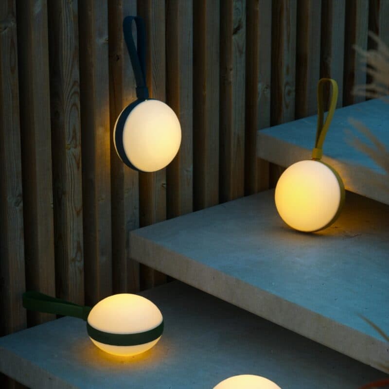 Die tragbare Akkuleuchte “Bring” von Nordlux sorgt überall für stimmungsvolles Licht – ob im Garten, am Strand oder auf dem Balkon. Dank des praktischen, aus recyceltem Material gefertigten Gummi-Henkels in Grün, Gelb oder Schwarz lässt sie sich bequem tragen oder aufhängen.