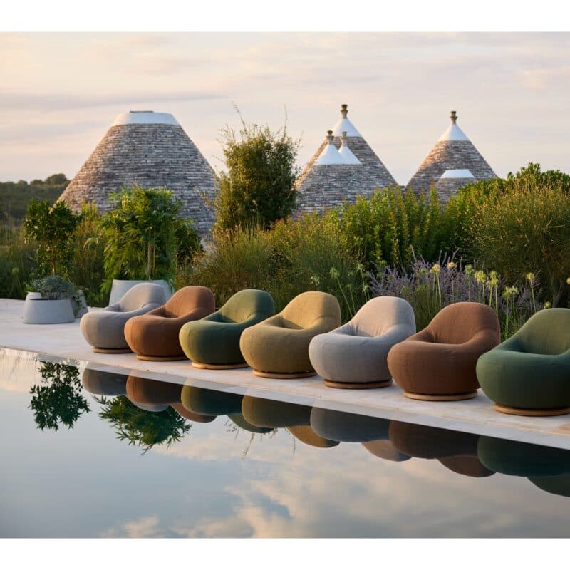 Drehbarer Outdoor-Sessel in skulpturalem Design, komplett gepolstertEnthält 19% MwSt.